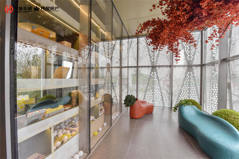 整個(gè)營(yíng)銷中心以極具特色的丹霞地貌為色彩靈感。美學(xué)藝術(shù)、潮流引領(lǐng)、年輕生態(tài)、社交互動(dòng)四大理念交織,一座“峽谷咖啡廳”,氤氳美好生活。咖啡、書店、座談、游趣……讓建筑不再冰冷,而是成為生動(dòng)的、溫暖的、富有趣味的生活主場(chǎng)。