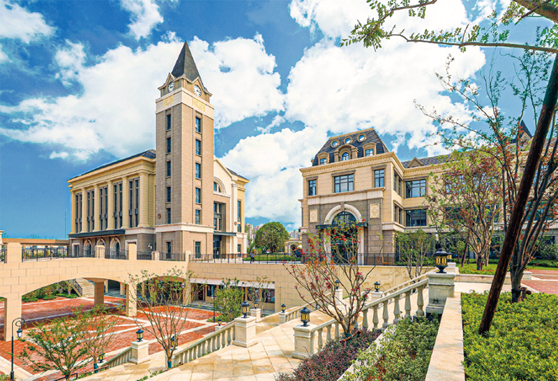 新華公學(xué)建筑風(fēng)格繼承了古典主義經(jīng)典美學(xué)原則,配以現(xiàn)代簡約的設(shè)計(jì)演繹,使得校園具有端莊雅致、成熟內(nèi)斂的整體建筑風(fēng)貌。圍繞建筑形成了花園式的多重院落空間,為師生打造了綠意盎然的生態(tài)景觀體系,滿足了“公共”及“獨(dú)立”的多樣化需求:軸線由入口空間展開,打造秩序感公共空間,空間類型豐富;中心核心庭院廣場,整個(gè)校區(qū)的核心亮點(diǎn)空間;教學(xué)區(qū)每塊設(shè)置各自的課間活動(dòng)庭院;生活區(qū)設(shè)置運(yùn)動(dòng)場地和花園田園等休閑與生活拓展空間。