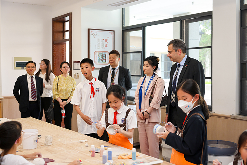 隨后,施睿耀先生一行參觀校園,對(duì)我校如公園般優(yōu)雅的校園環(huán)境贊不絕口,在特色場(chǎng)館及功能教室中,學(xué)生講解員用流利的英文全面而詳細(xì)地進(jìn)行了介紹,展現(xiàn)了我校學(xué)子“高學(xué)養(yǎng)”“高素養(yǎng)”的雅韻風(fēng)采。