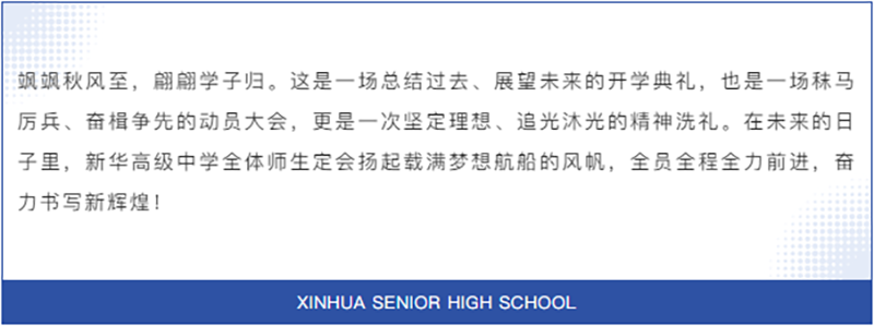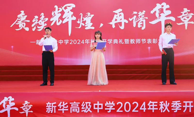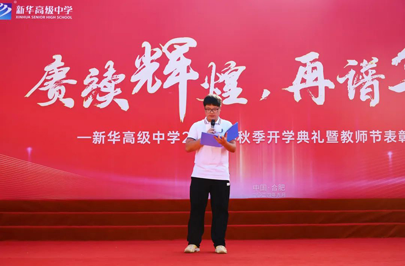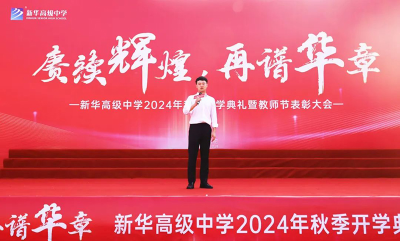 萬物積勢迎秋風,策馬揚鞭續輝煌。2024年9月10日上午,新華高級中學在校運動場隆重舉行2024年秋季開學典禮暨教師節表彰活動。新華高級中學校長徐邦民,副校長陳俊、王昌武、蔡賢滿、吳東、方明生等領導及全體師生齊聚一堂,共同見證了這一激動人心的時刻。新學期,新面貌,我們重新啟程!