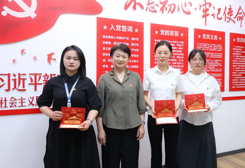 大會還為5月份入黨的郜秀鳳、宋皖渝、余友情等黨員同志舉辦了政治生日活動。黨支部書記樊福鳳向她們頒發政治生日賀卡,這不僅是對黨員入黨的紀念,更是對黨員身份的提醒與激勵。