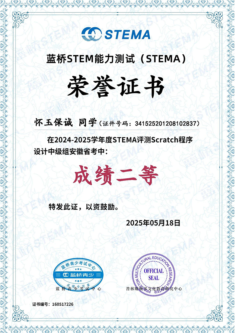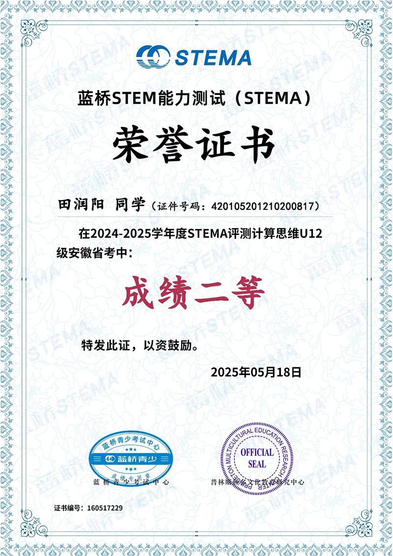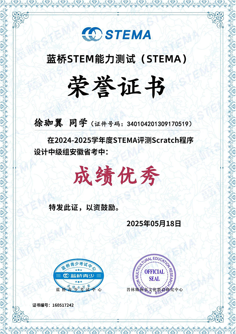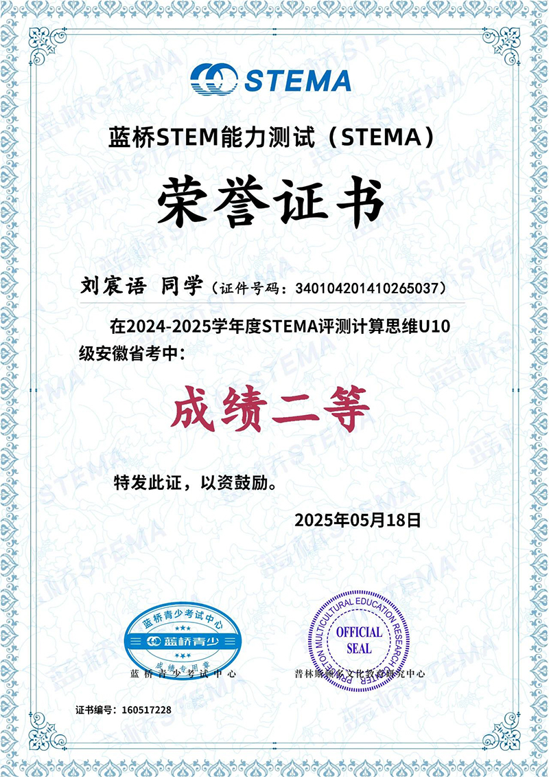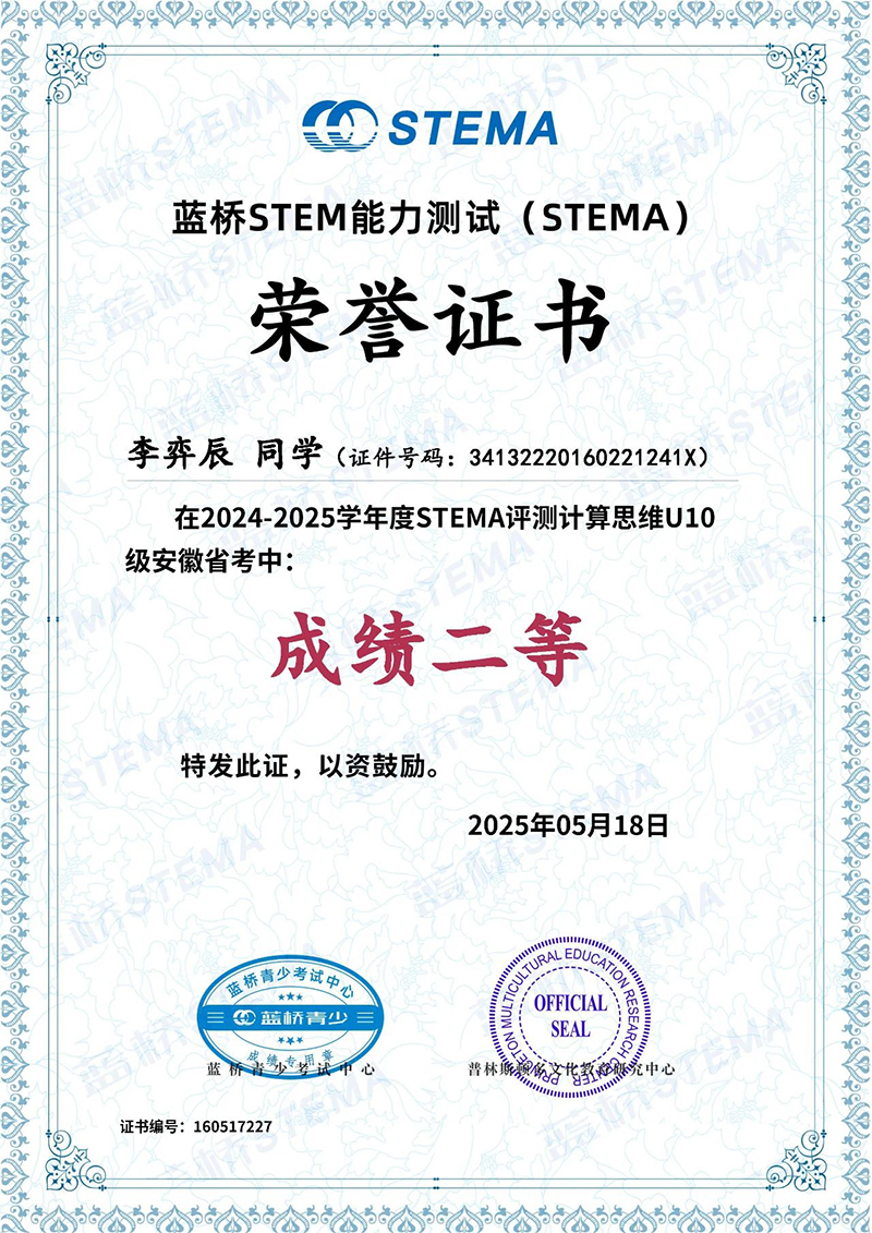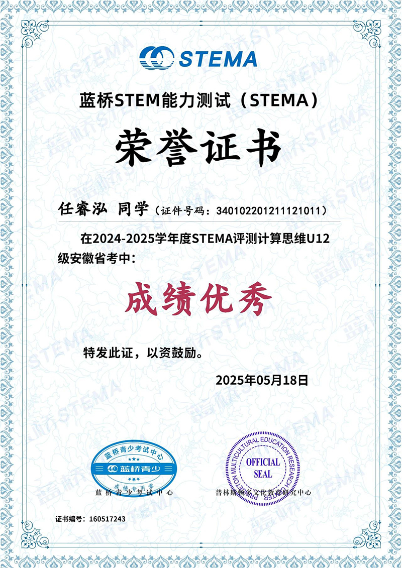 近日,藍(lán)橋STEMA安徽省考成績(jī)揭曉,我校多名學(xué)子在此次測(cè)評(píng)中脫穎而出、斬獲佳績(jī),為學(xué)校爭(zhēng)得了榮譽(yù)。向所有獲獎(jiǎng)同學(xué)致以最熱烈的祝賀!?