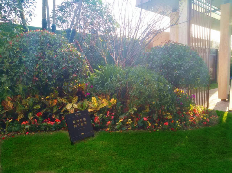 廊道旁,綠油油的草坪,花開正艷的小苗木,修剪成型的灌木,以及筆直的喬木,構成了一處處花境!