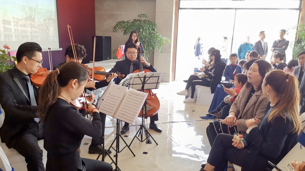 分享會開始前,學校的音樂老師用專業的豎琴和四重奏表演為與會家長獻上了一場聽覺盛宴。