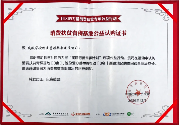 華地物業(yè)榮獲“中國社區(qū)扶貧聯(lián)盟理事單位”榮譽(yù)稱號