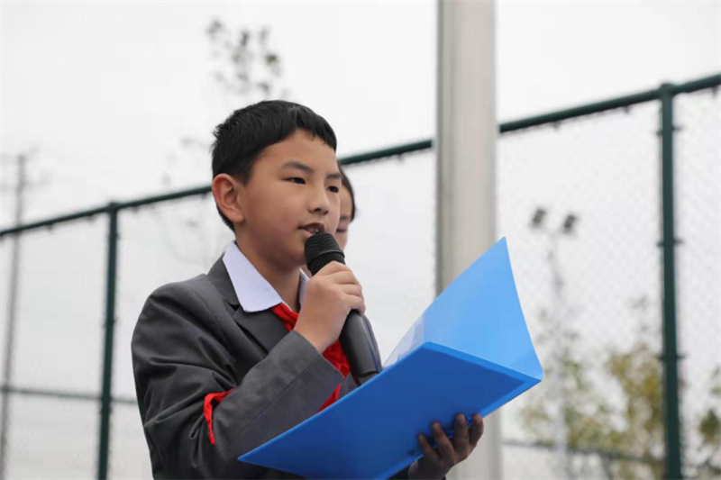 五年級(jí)老隊(duì)員代表秦宇恒同學(xué)希望新隊(duì)員懂禮儀、會(huì)學(xué)習(xí),從加入少先隊(duì)的第一天開始就努力成為一名優(yōu)秀的少先隊(duì)員,為學(xué)校爭(zhēng)光,為紅領(lǐng)巾添彩!