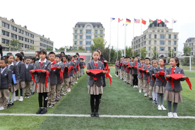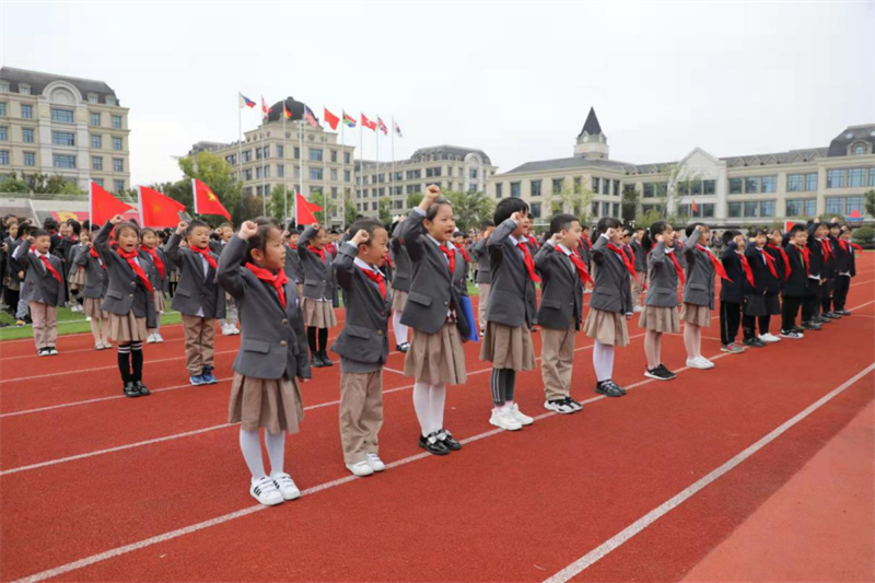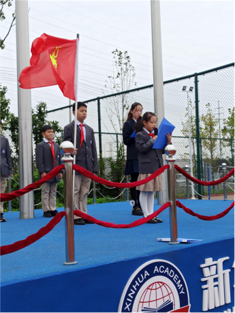 2021年10月13日上午,“紅領(lǐng)巾心向黨 爭(zhēng)做新時(shí)代好隊(duì)員”慶祝少先隊(duì)建隊(duì)72周年主題隊(duì)會(huì)暨新隊(duì)員入隊(duì)儀式在合肥新華公學(xué)隆重舉行。在這次入隊(duì)儀式上,我校共有56名新隊(duì)員光榮地加入了少先隊(duì)這個(gè)大集體。在熟悉而親切地少先隊(duì)出旗曲中,少先隊(duì)旗手與護(hù)旗手們邁著整齊的步伐,精神抖擻地進(jìn)行著莊嚴(yán)地出旗儀式,少先隊(duì)入隊(duì)儀式由此拉開序幕。