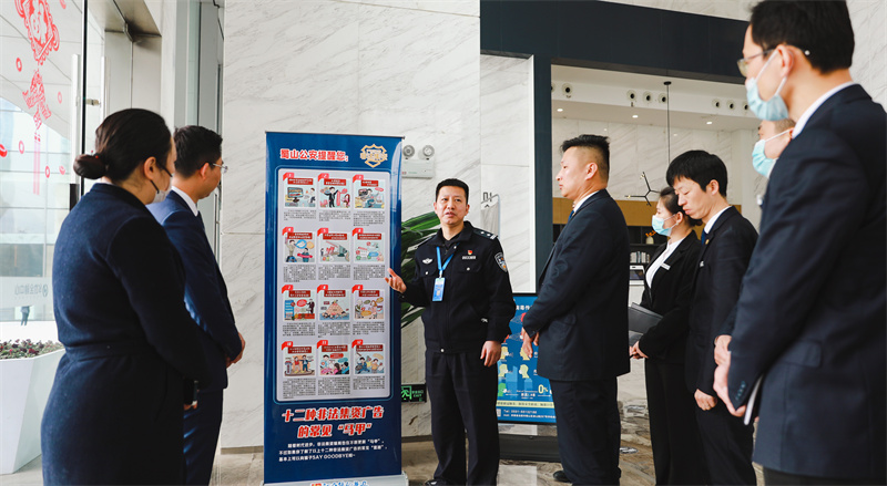 參觀結(jié)束后,雙方就“警企共建話平安”這一主題召開專項(xiàng)座談會(huì),共商共建平安轄區(qū)。朱所長(zhǎng)為參會(huì)人員著重介紹了打擊違法犯罪活動(dòng)、防范電信網(wǎng)絡(luò)詐騙、風(fēng)險(xiǎn)隱患排查整治等警務(wù)工作開展情況,對(duì)常態(tài)化疫情防控、企業(yè)安全生產(chǎn)、流動(dòng)人口管理等方面進(jìn)行了重點(diǎn)強(qiáng)調(diào),南七派出所將緊扣轄區(qū)企業(yè)發(fā)展需求,以優(yōu)化營(yíng)商環(huán)境為己任,凝心聚力落實(shí)“警企互動(dòng)”,與華地好生活集團(tuán)攜手共筑“防護(hù)盾牌”,致力于搭建互動(dòng)聯(lián)動(dòng)、共贏多贏的“手挽手”警企關(guān)系,為構(gòu)建平安轄區(qū)、和諧城市保駕護(hù)航。