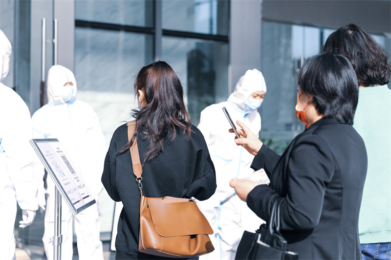 在疫情反撲的態勢下永遠有這樣一群不辭辛勞的戰士們身著白衣,為大家筑起安全屏障“請大家佩戴好口罩,保持1米以上的安全距離出示健康碼,憑碼進入,謝謝配合”。