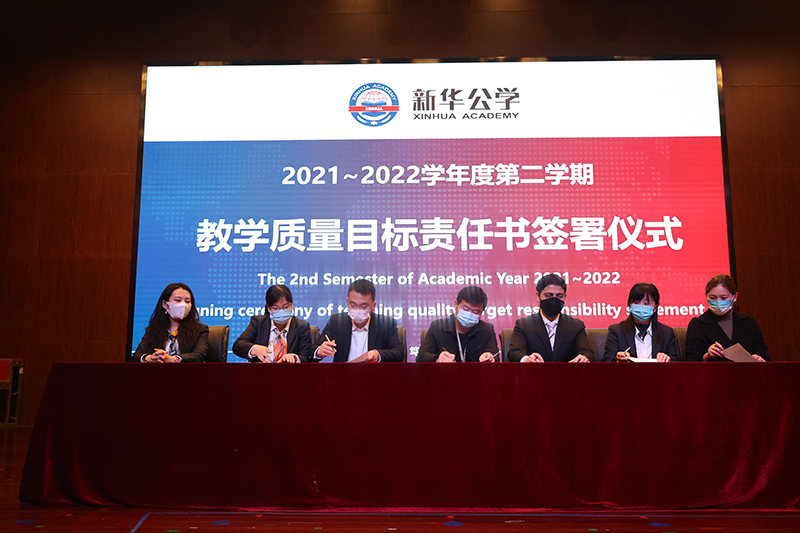 教育教學質量是學校發展的生命線,為牢固樹立質量意識和競爭意識,提高我校教育教學質量,圍繞學校“好分數、好素質、好品位”的學生培養要求,努力實現學校“高素養”“高學養”的培養目標。2021-2022學年度第二學期雙語部小學教學質量目標責任書簽署儀式于4月2日在報告廳隆重舉行。