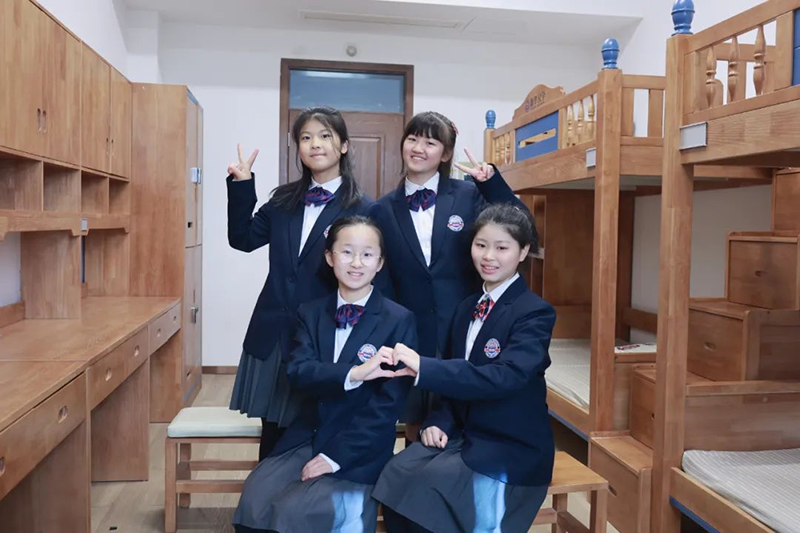 學(xué)校采用全封閉寄宿制管理,住宿環(huán)境為四人間,實(shí)木床,24小時(shí)冷熱水,24小時(shí)冷暖空調(diào),24小時(shí)校醫(yī)、宿管、老師陪伴、開通親情電話……宿舍不只是孩子睡覺的地方,也是精神家園,在這里感受家的溫暖。