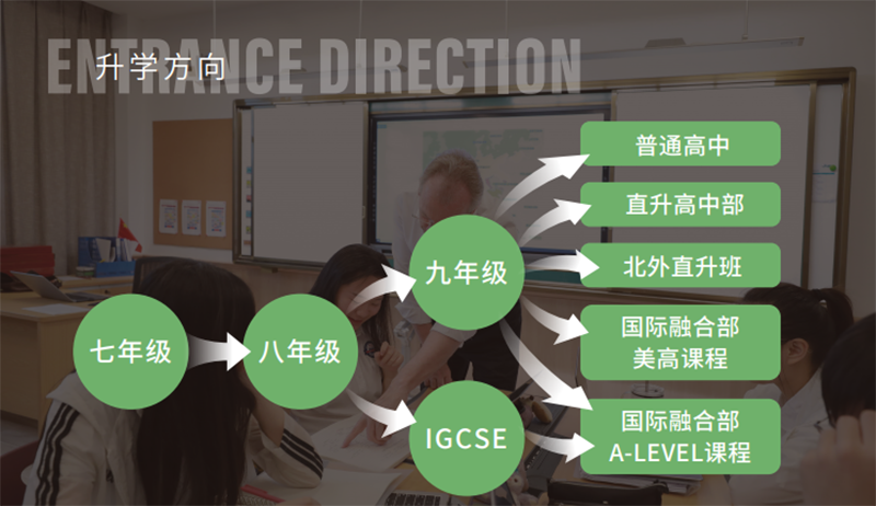 為了完美地銜接高中,我們?cè)诤⒆尤胄i_始,就為孩子進(jìn)行升學(xué)規(guī)劃,并將升學(xué)課程融入日常課表中。