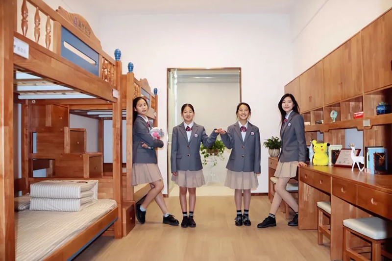 學校采用全封閉寄宿制管理,住宿環境為四人間,實木床,24小時冷熱水,24小時冷暖空調,24小時校醫、宿管、老師陪伴、開通親情電話……宿舍不只是孩子睡覺的地方,也是精神家園,在這里感受家的溫暖。