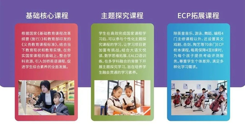 在完成國家規定課程的基礎上,強化語文、數學、歷史、政治等課程教學,融合課程由外教進行授課,包括英語文學、數學、戲劇和科學等主修課程。