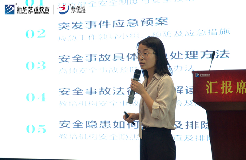 活動伊始,新華藝術教育總經理蔡賢滿就藝學堂校區安全做重要指示,他強調:“夏季安全隱患高發,藝學堂開展校區安全培訓講座,就是希望樹立教師安全意識、規范校區安全標準,為家長、孩子營造一個好的校區環境。”