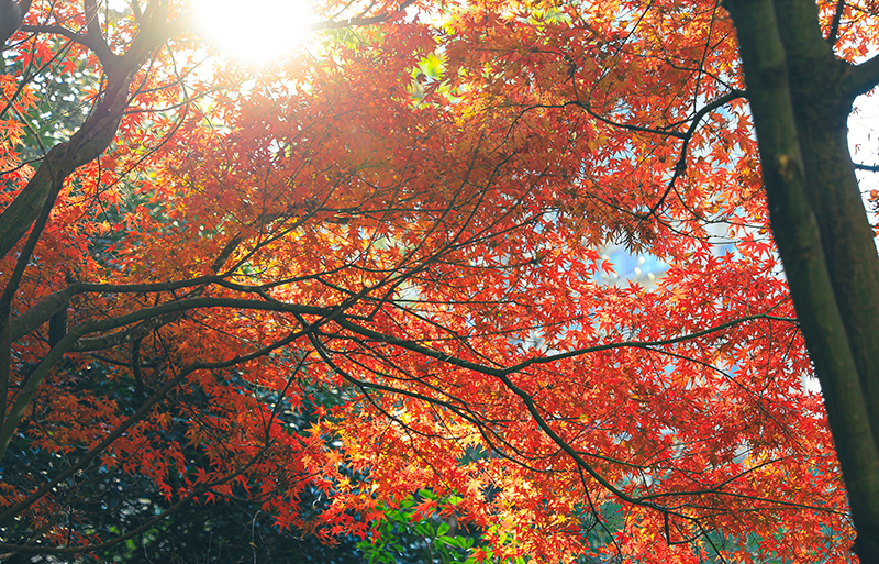 “霜染鴉楓迎日醉”,和煦陽光灑滿楓葉,如生命之火輕盈躍動,以經霜不改蓬勃的風姿溫暖過路歸人。