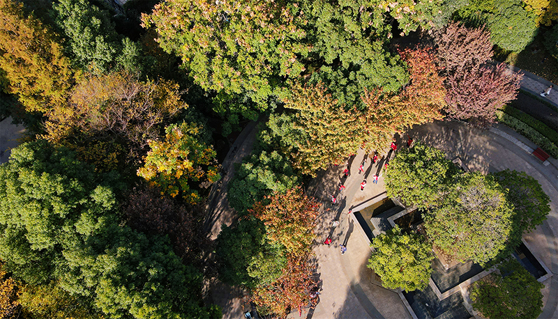 黃葉如金,沉醉在冬景的人們聚在繽紛林蔭下,或漫步賞景,或歡笑暢聊,總有享不完的樂趣。
