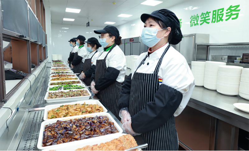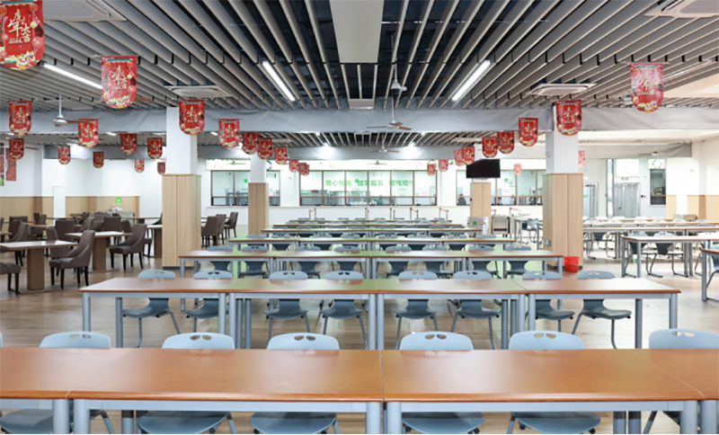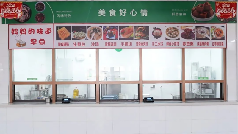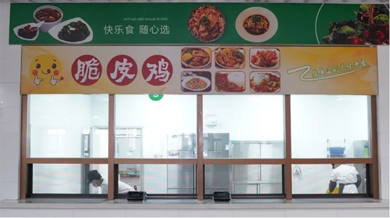 學(xué)生餐廳菜品留樣三天,餐具24小時(shí)消毒處理;菜品種類齊全,集各地美食于一體、多元風(fēng)味并存;食材采購(gòu)來源大品牌超市,食材新鮮,質(zhì)量有保證;明廚亮灶工程,集視頻監(jiān)控、展示直播于一體,保護(hù)師生“ 舌尖上的安全”。