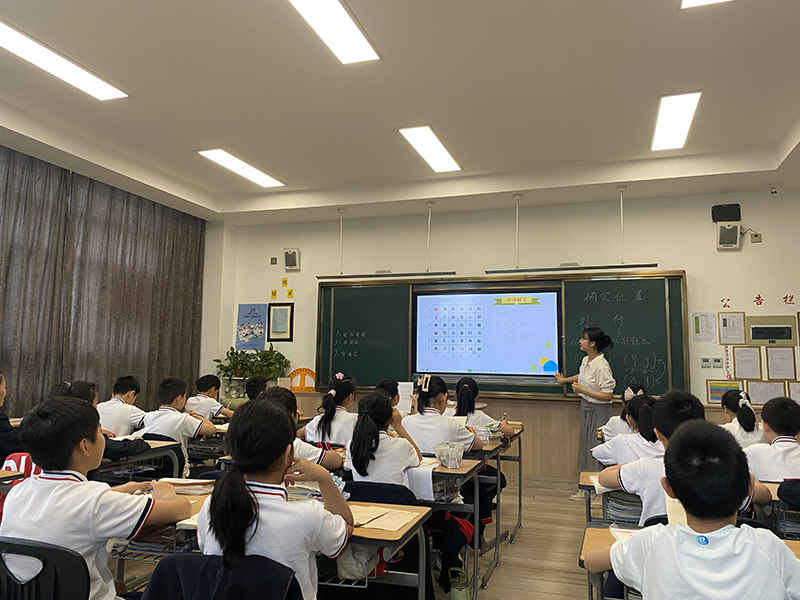 李亞芬老師帶來《確定位置》。李老師從學生生活實際入手,采用學生自主探究、合作交流為主,教師點撥引導為輔的策略,讓學生在生活實例中感知,在積極思辨中發現,在具體運用中理解學習數對的必要性。