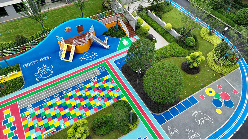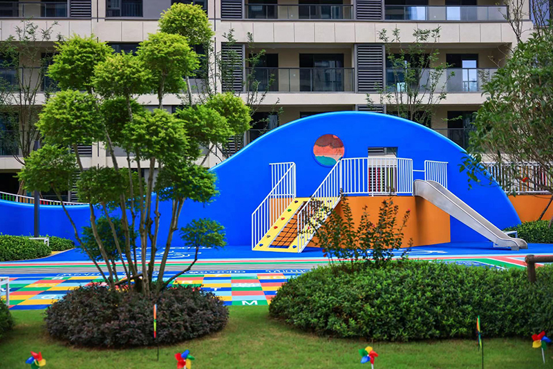 童享世界、陽光大草坪、健康跑道、趣味架空層等休閑活動場地圍合居所,分布在社區各處,將運動、社交、成長等元素融入社區藍圖之中,人與建筑及場景在此相融,激發著你和孩子們的探索欲和好奇心。
