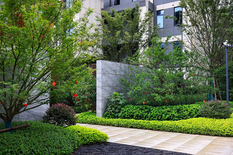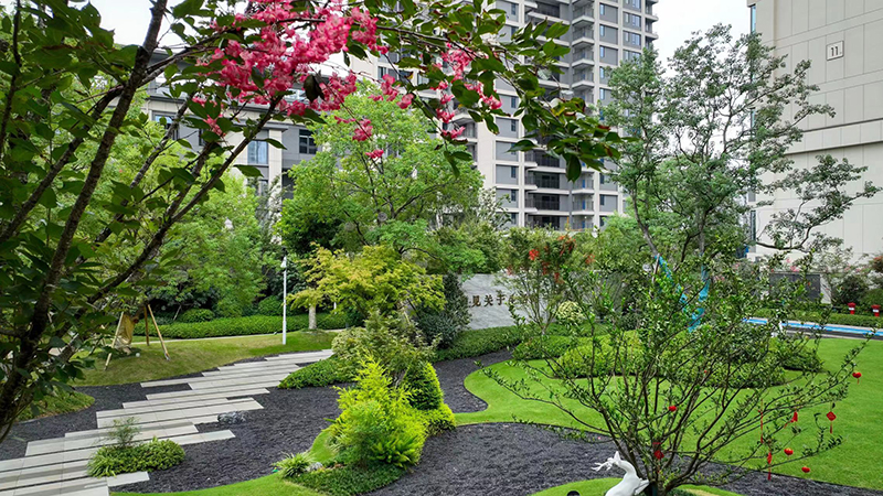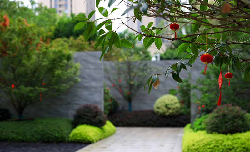 長青喬木、應時花草一起組成,春花、夏蔭、秋聲、冬藏的畫境開啟歸家漫時光,漫步其中,移步異景如畫卷層層鋪展。