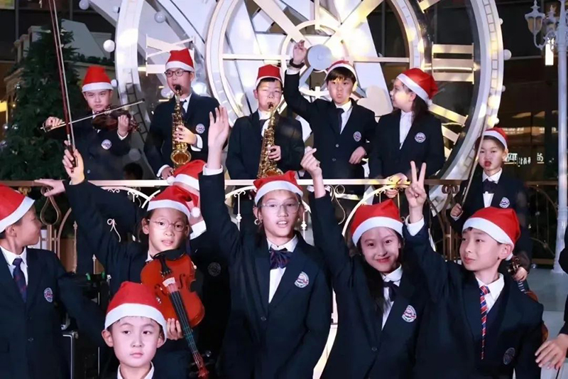 樂團的成員各具風采,才華橫溢,富有層次感的音符從孩子們的指尖緩緩流淌,縈繞耳畔飛向天空,這突如其來的驚喜,給觀眾們帶來了一場聽覺盛宴。讓萬象城原本就歡樂的圣誕氛圍,更增添了一抹亮色。