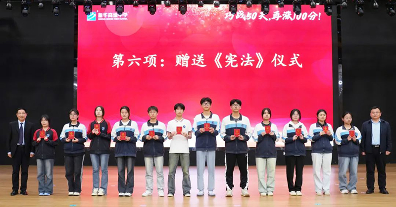 十八歲,意味著成熟,也意味著責任。學校為每一位同學贈送《憲法》讀本,希望同學們時刻牢記法律底線,做守法、護法的有志青年,弘揚法治精神。