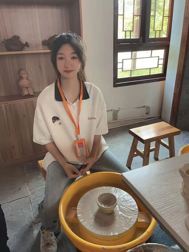 胡媛在陶藝課上創(chuàng)作